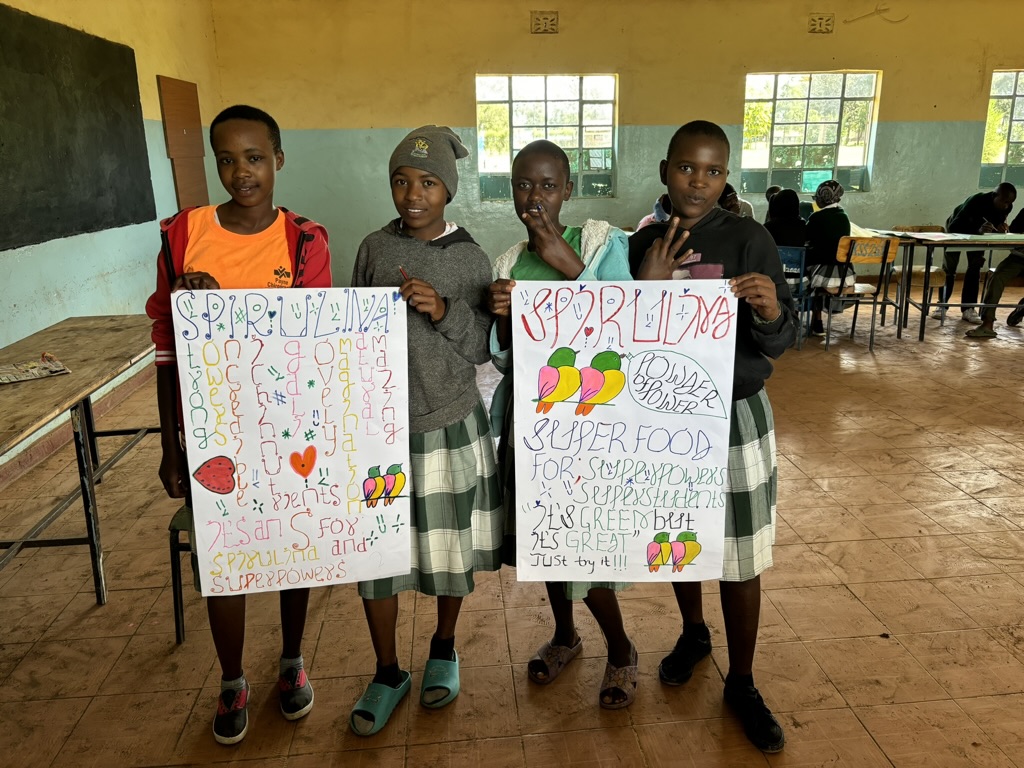 Students at Keriko Secondary are growing, experimenting with, and harvesting spirulina in two greenhouses on campus, aided by their teachers and school staff. The spirulina is provided for the benefit of the community, as a highly nutritious supplement to the school feeding program in the neighboring preschool.
